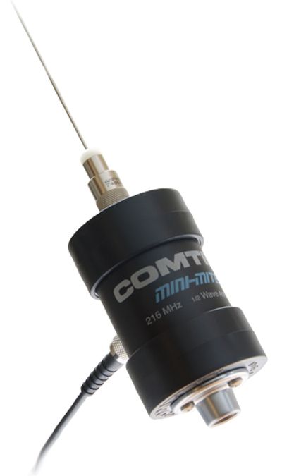 The COMTEK Mini-Mite 216 is a 1/2 wave antenna for use with the BST 25-216 and BST 75-216 transmitters. Because the Mini-Mite utilizes 1/2 wave technology, it does not need to have an antenna ground and can be mounted to metallic or non metallic sound carts using a standard mic stand mounting flange.